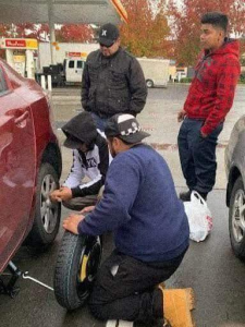 Stuck with a Flat Tire, Help Came From Unexpected Hands